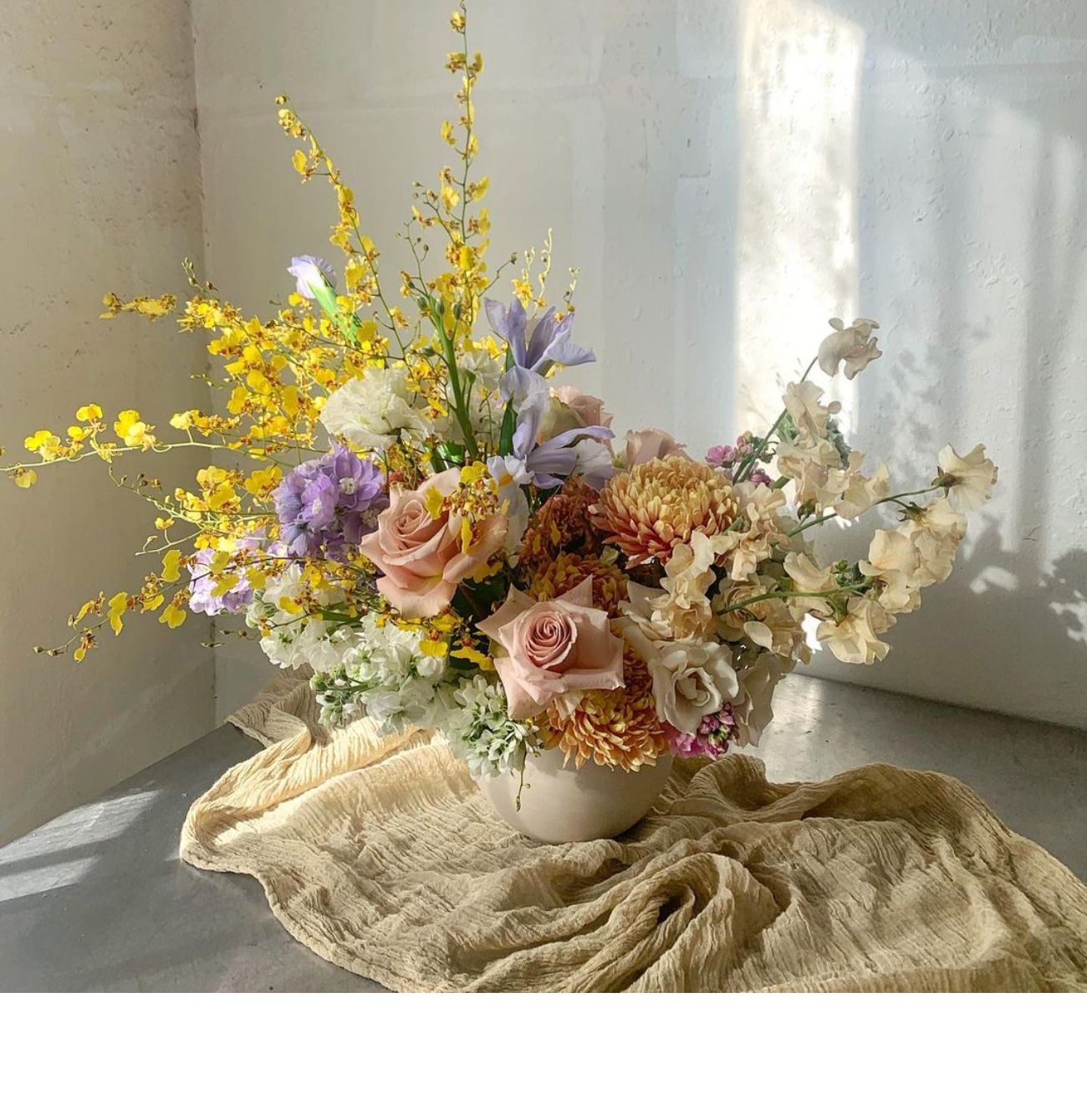 While gaining a degree in Interior Design, I had the realization that if I blended my floristry background with my knowledge of space and flow I could create incredible and memorable events. After college, I spent my 20s living in Brooklyn, finding my path and building my community, and after many years I realized that not only did I miss California, but I also deeply missed flowers. I moved to LA in 2018 with the intention and drive to begin Offerings. In the flux of it all, I worked with incredible designers in Northern California and traveled throughout Southeast Asia to gain clarity about what I wanted to build in my brand. The name “Offerings” is directly derived from the endless amounts of flowers I saw placed and carved into temples and homes during my travels.